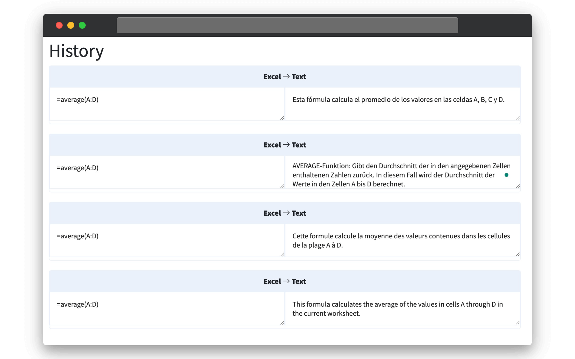 FormulaBerry is fluent in English, German, Spanish, French and more languages. Whether you're generating an Excel formula or seeking an explanation for a Google Sheets function, you can do it all in your preferred language.