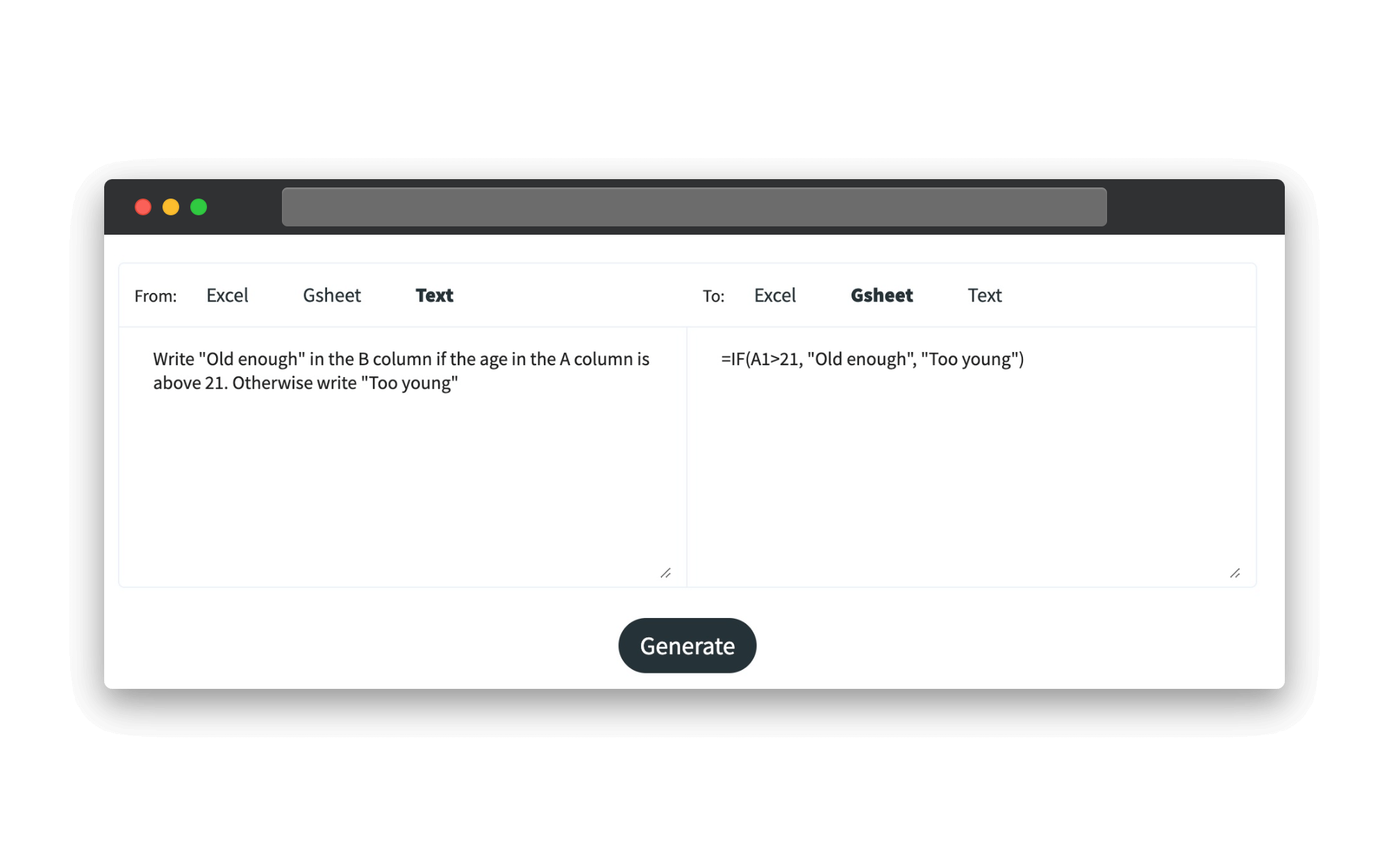 For small businesses, every minute and every dollar count. FormulaBerry transforms complicated Excel and Google Sheets formulas into understandable language, thus saving you time. It also helps you generate the perfect formula from your description. With FormulaBerry, you'll breeze through spreadsheets without hiring an expert or spending hours on a single task.